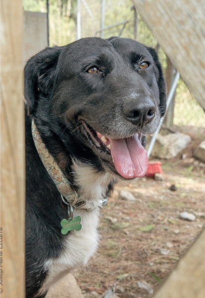 Pasea bien con correa y cada vez está más integrada a la vida del refugio. Es vivaracha, obediente, lista y se deshace con los mimos.
