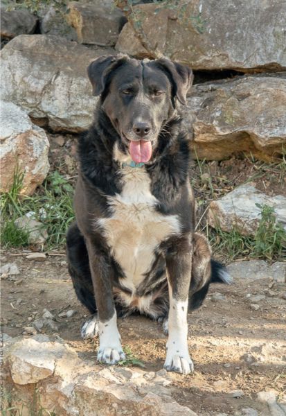 Debido a su falta de socialización a temprana edad, llegó siendo un poco locuela, aunque es muy dulce con personas y se lleva bien con perros.