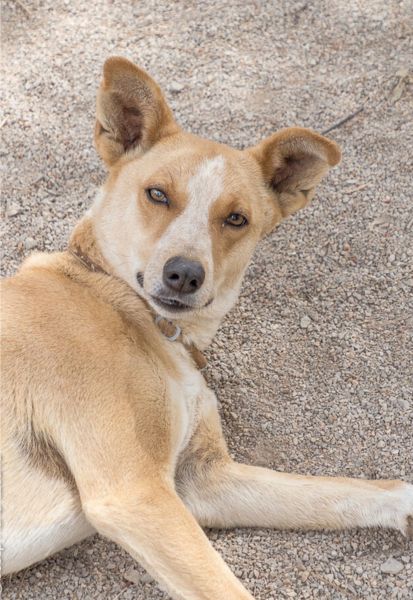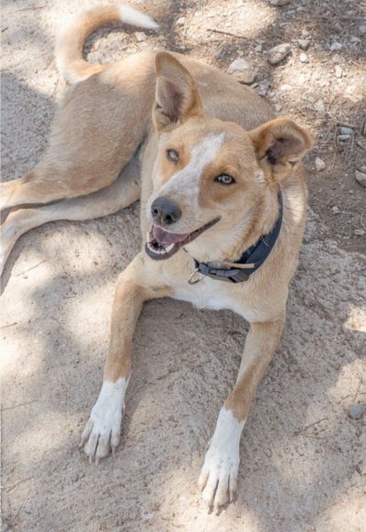 Se ha integrado muy bien en la manada. Es pacífica y no busca problemas con l@s demás perr@s.  Cuando no te conoce es un poco desconfiada, pero si la tratas con dulzura, se convierte en una perrita a la que le encantan los mimos. En el refugio, le gusta estar pendiente de l@s cuidador@s y es muy obediente, siempre acude cuando la llamas.